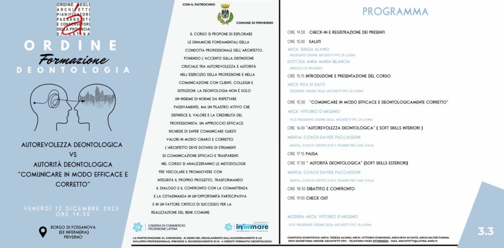 Si comunica che è disponibile sulla piattaforma iM@teria la replica, in modalità Fad asincrona, del seguente corso svolto in frontale il 12 dicembre 2025 presso l’ex infermeria di Fossanova:
